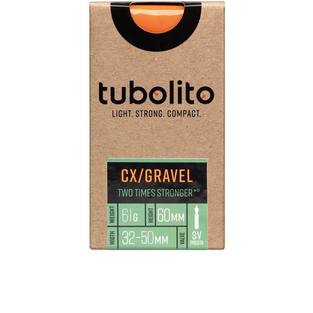 Alle Breiten, alle Wege: Der neue Tubo-CX/Gravel-All ist für Reifen von 32 mm bis 50 mm Breite geeignet und deckt somit sämtliche im Cyclocross und Gravel Segment gängigen Reifenbreiten ab. Neben 700C Reifen ist er auch für 650B Laufräder geeignet. Freigegeben für Felgen- sowie Scheibenbremsen und mit doppelter Robustheit im Vergleich zu Standard-Butylschläuchen ist der Tubo-CX/Gravel-All somit der perfekte Allrounder. Erhältlich mit 42 mm (60 Gramm) und 60 mm (61 Gramm) Sclaverand-Ventilen.